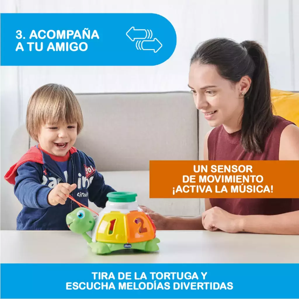 JUGUETE DE ARRASTRE: La Tortuga Sorpresa de Chicco es un juguete electrónico y musical muy divertido que anima a los niños a moverse a través de una serie de actividades fantásticas y con cuerda para arrastrar el juguete como una mascota